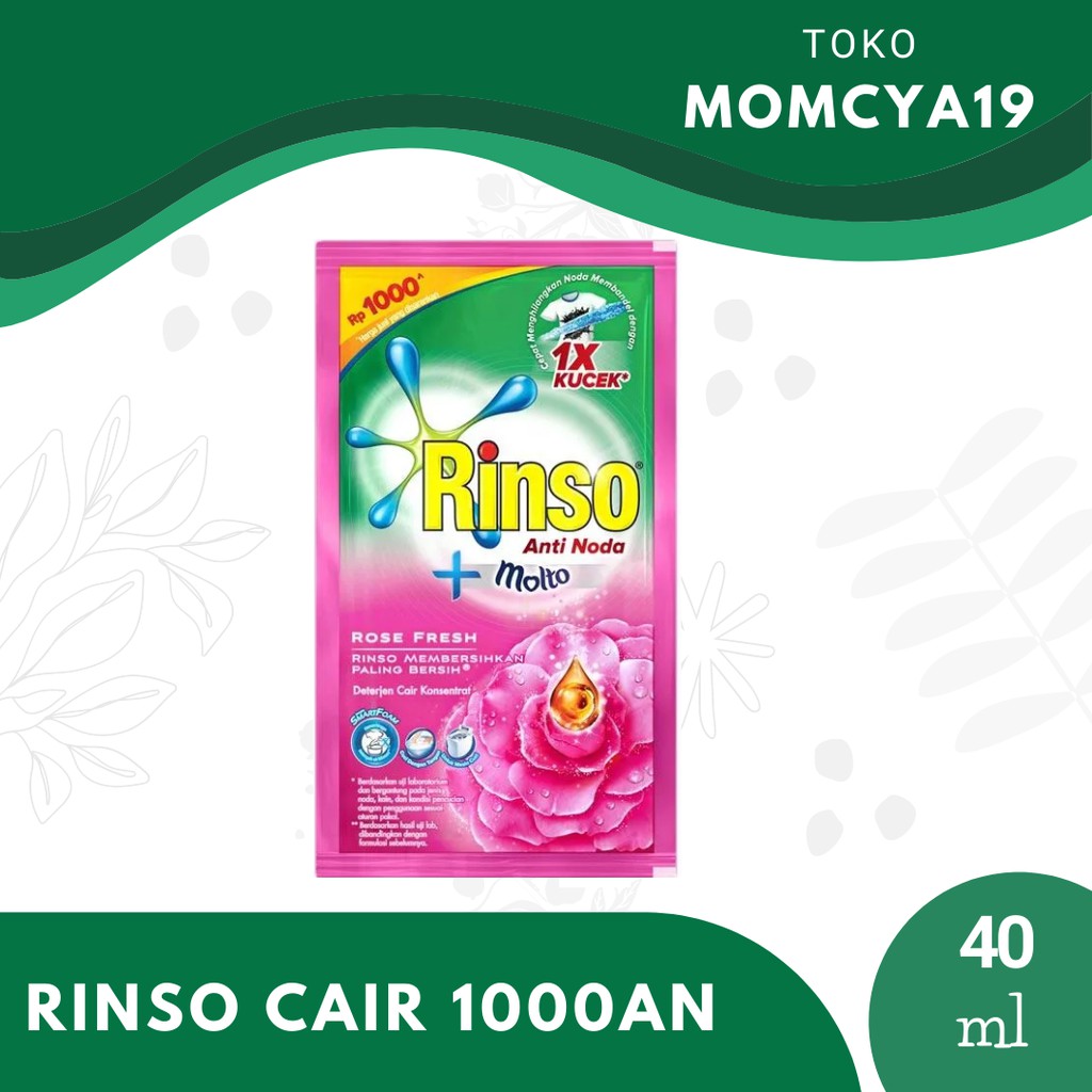 RINSO MOLTO CAIR ukuran 40mlharga yang tertera merupakan harga per-renceng1 Renceng isi 6sachetharga normal 1 sachet 1000ansilahkan diorder, stok banyak selalu ready yaNote : Jika membeli produk lebih dari 1 atau ingin pengiriman lebih aman, WAJIB menambahkan TAMBAHAN PACKING di toko kami. Link tambahan packing : https://bit.ly/3939u7iHappy Shoppin