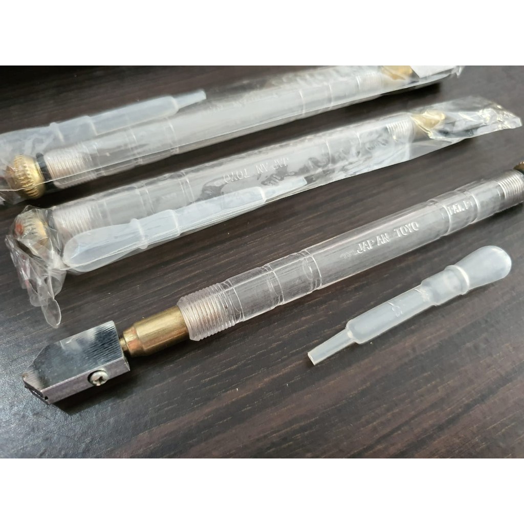 Alat Pemotong Kaca menggunakan minyak / Glass CutterPenggunaan secara manualMerek TOYO Japan, Tipe TC-30Termasuk pipet tetesnya (tidak termasuk minyak tanahnya)Harga