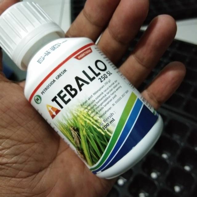 Teballo menggunakan bahan aktif nitenpyram 250 gram/liter.Insektisida sistemik racun kontak dan lambung berbentuk larutan dalam air untuk mengendalikan hama wereng coklat pada tanaman padiCukup menggunakan 0,75 ML atau au 0,375 liter per hektar dengan volume semprot 500 liter per hektar efektif untuk membasmi hama wereng cok
