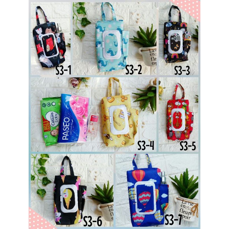 Tempat Tisu 3in1 ✨rincian: *tisu Basah 50 sheet, *tisu Kering 50 sheet *terdapat kantung handsanitizer⭐bahan Waterproof⭐mudah dibawa ke mana2⭐praktis⭐bisa di gantung di dlm mobil.. ⭐Size 20x11x4⭐bisa pilih motif (mohon chat dulu utk ketersediaan motif )happy shoppi