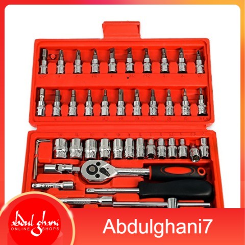 Spesifikasi46 pcs 1/4 " drive metrik socket ratchet mekanik rumah diy tool kit set ( MK0502 ) :1/4 " drive metrik soket : - 4 , 4.5 , 5 , 5.5 , 6 , 7 , 8 , 9 , 10 , 11 , 12 , 13 , 14 mmcepat - rilis , ratchet 72-gigiekstensi : 50 mm , 10 mmporos fleksibel attachment-150mmspinner handle-150mmgeser bar-100mmuniversal bersama1/4 " x1 / 4 " hex untuk adaptor persegikunci hex : 1.27 , 1.5 , 2 , 2.5 mmbit soket : - 6 hex : 3 , 4 , 5 , 6 , 7 , 8 mmslotted : 4 , 5.5 , 7 mmphillips : ph1 , ph2 , pH3pozi : PZ1 , pz2 , PZ3tprque : t10 , T15 , T20 , T25 , t30Bentuknya simple handy and praktis. Dilengkapi dengan kotak seperti koper dengan ukuran 24cm X 13cm X 4cm memudahkan untuk dibawa kemana2. persiapan untuk berkendara, dikantor, dirumah dan dimanapun ketika dibutuhkan. Cocok untuk sepeda, sepeda motor dan mobil yang mur baut nya bertekanan (psi) rendah, tapi cukup memudahkan untuk menjangkau mur baut diarea yg sempit.NO CANCELNO RETURBARANG TDK BERGARANSIORDER = S