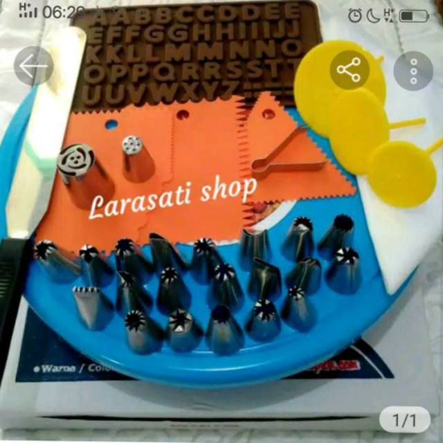 Isi paket : cake tray meja putar maspion spuit wilton lokal 1 set isi 19 pcs spuit rumput spuit rusia paku mawar 1 set scraper 1 set spatula butter cream capitan plastik segitiga cetakan silicon alphabeth Happ
