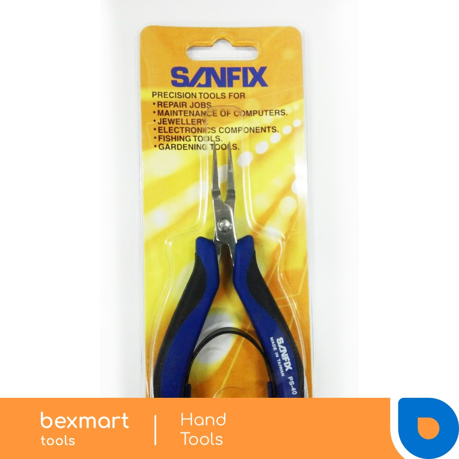 Tang Jepit Rata 4.5" Sanfix PS-40Type ini mempunyai samping yang oval jika di tekan tang akan menjadi membulat.Lebar jepit 1.3mmLebar ujung 1.2mmTang potong ini sangat presisi untuk pekerjaan:- Repair.- Perhiasan.- Komponen Elektronik.- Peralatan Memancing.- Peralatan berkebun dll.OriginalMade in T