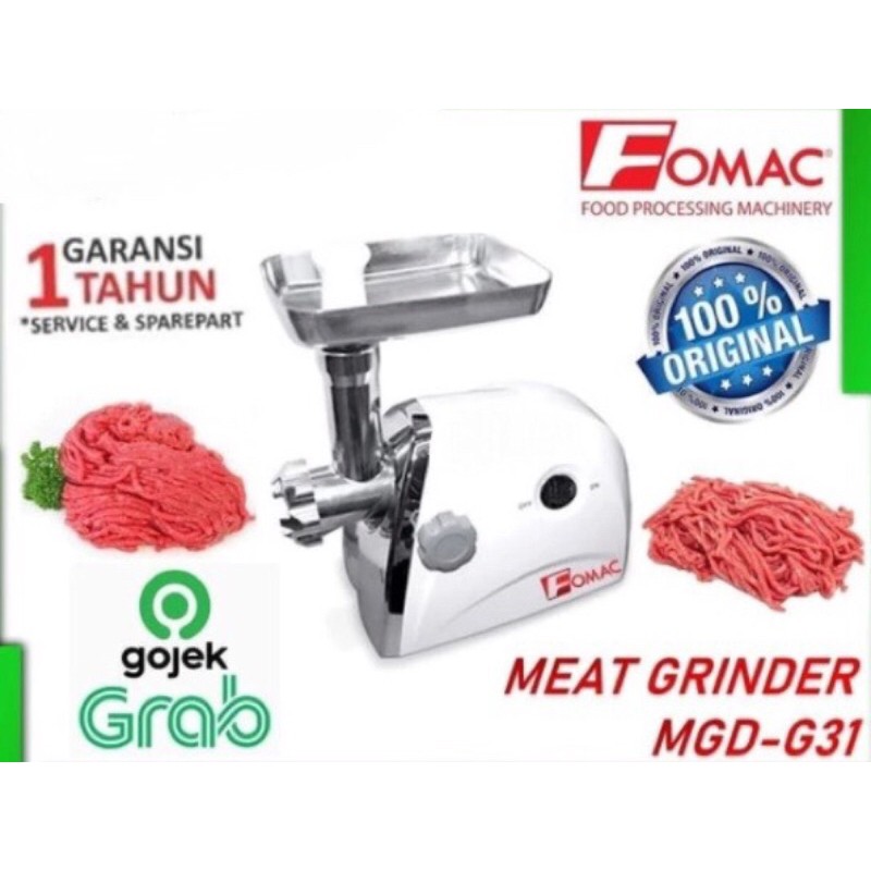 Dilengkapi dengan :- 3 Jenis Ukuran Pisau- 3 Ukuran Slongsong SosisMeat Grinder Fomac MGD-G31 Mesin giling daging atau sering disebut meat grinder adalah alat atau mesin yang digunakan untuk menggiling daging menjadi bentuk lebih halus. Mesin giling daging banyak digunakan oleh pengusaha-pengusaha bakso, sosis, dan pengusaha lainnya yang bergerak dibidang usaha yang berbahan dasar daging yang halus dan dihaluskan terlebih dahulu.Mesin giling untuk daging biasanya terbuat dari bahan stainless steel yang mana akan menghasilkan higienitas dan juga kebersihan terhadap daging yang diolah, mesin kami memiliki loyang yang terbuat stainless dengan body dan alat giling yang juga terbuat dari baja stainless. Selain itu, mesin kami memiliki putaran mesin yang stabil dengan output yang besar.Spesifikasi :Jenis Barang : Mesin Giling Daging / Meat GrinderBrand : FOMACType : MGD-G31Voltase : 220V / 50-60 HzDaya Listrik : 200 WattKecepatan Giling: 45 kg / JamMesin Size ( P x L x T ) : 44 x 23 x 21 cmBerat mesin ( Gross ) :