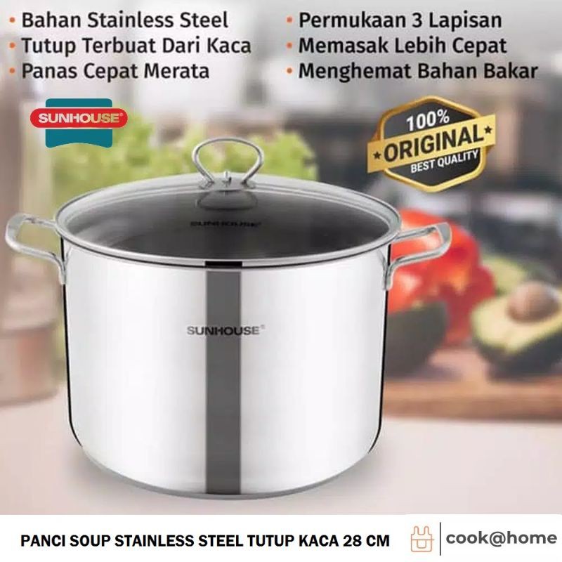 Panci Inox terbuat dari stainless steel mengkilap dilengkapi dengan gagang stainless yang kuatTutup kaca agar bisa melihat masakan ketika memasak tanpa membukaPanci tebal dengan 3 lapisan bawah sehingga dapat menyebarkan panas dengan cepatmenghemat bahan bakar dan waktu memasakDapat digunakan pada semua jenis kompor termasuk kompor induksUkuran D.28cmUkuran T. 20cmSilakan di pilih dan klik keranjang untuk membeli☺☺HAPPY SHOPP