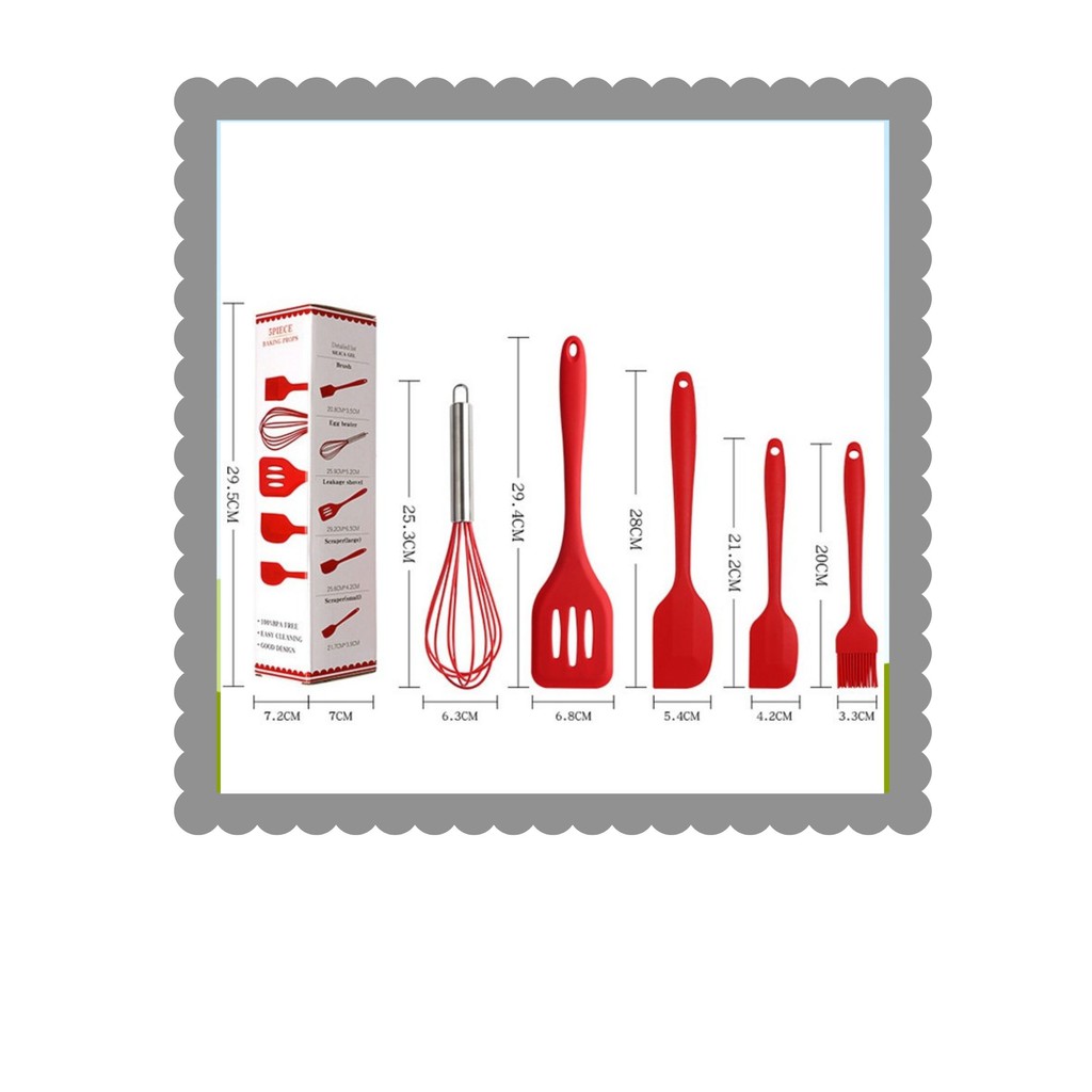 Name: 5 In 1 Spatula Silicone Set | Silikon Cooking Baking Tahan Panas - Merah