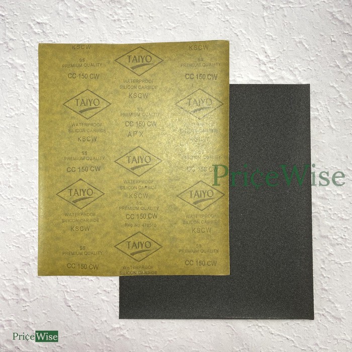 Merk: TaiyoUkuran: 9 x 11 inch / 230 x 280 mmGrit: P150Multifungsi: Kayu, Mobil, Besi Harga per lembarWaterproofSilicon Ca