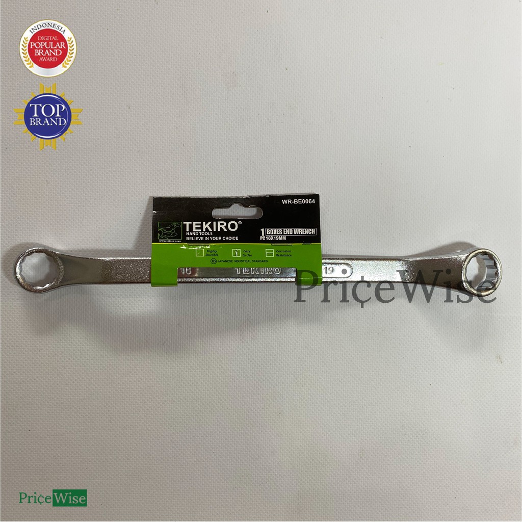 Merk: TekiroItem Code: WR-BE0064Ukuran: 18x19 mmBahan: Chrome Vanadium (CrV), sehingga produk mengkilat, kuat dan tahan karat.Dropped forged and heat treated for extra strengthSilver Matt Finish Raised panel type provides added strengthJIS (Japan Industry Standard)Barang dijamin original Te